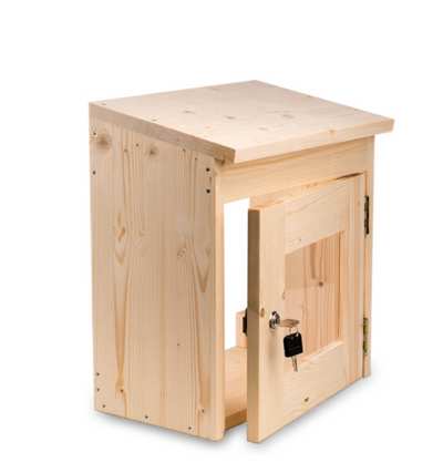 Carcasa rezistenta la intemperii pentru unitatile de comanda ale saunei, ideala pentru saunele amplasate in exterior, cu rama din lemn moale si fereastra de vizualizare.